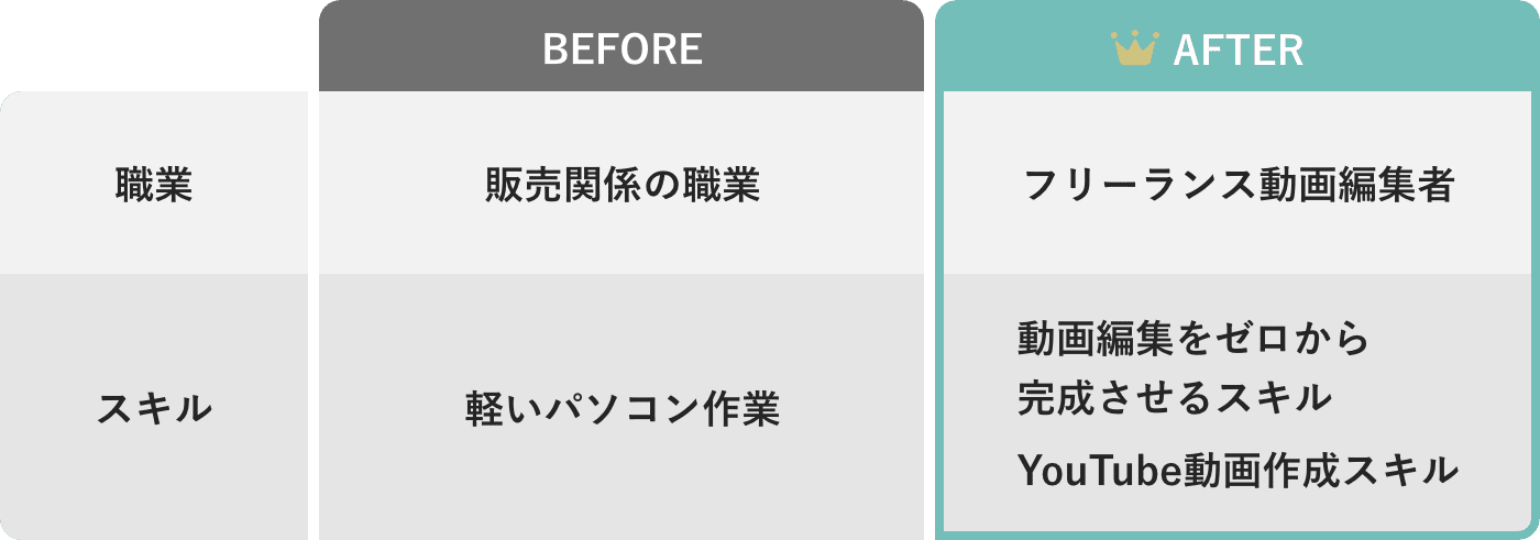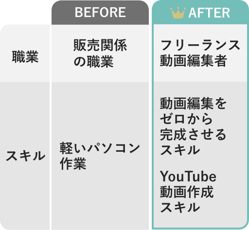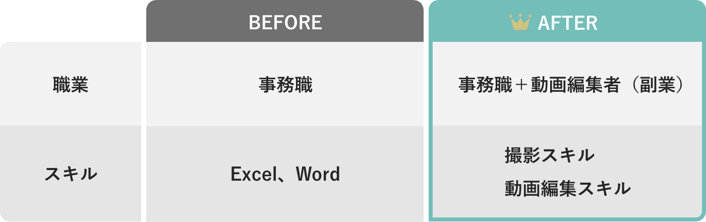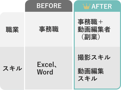 事務職で給料も低く、将来に漠然と不安を抱えてるところに動画編集に出会い、副業としての働き方に興味を持ちました。